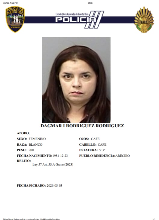 La Policía informó el martes, en horas de la mañana, que la Fiscalía presentó un cargo por maltrato a menores contra Dagmar Rodríguez Rodríguez, de 44 años y residente de Arecibo, por hechos en un cuido del área.
