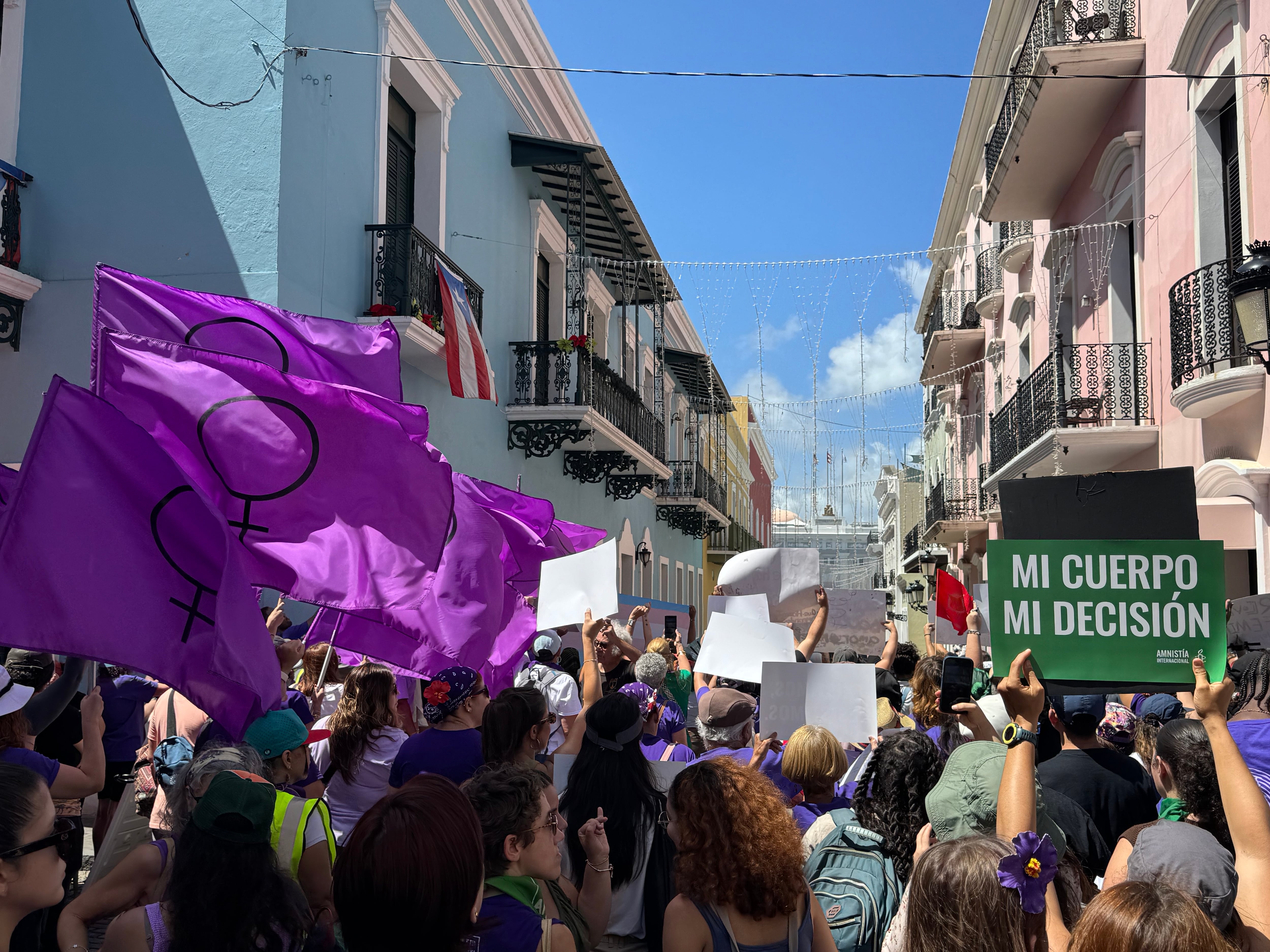 La ACLU de Puerto Rico participó en la marcha del 8M en San Juan, apoyando los derechos de las mujeres y denunciando la remilitarización.