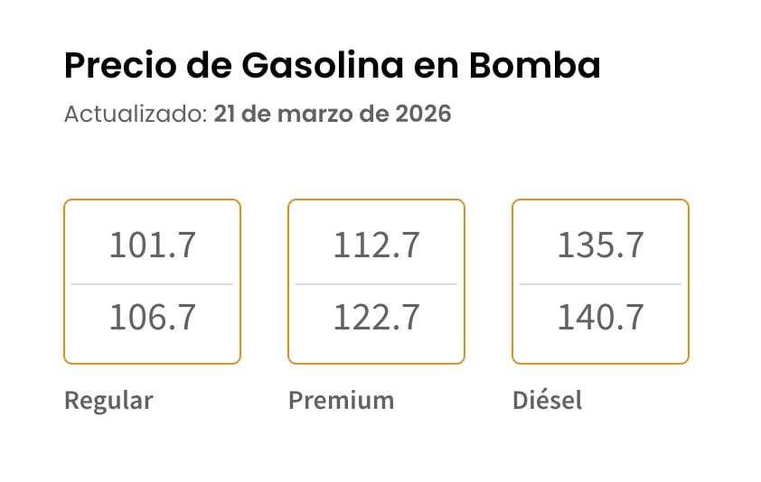 - Gasolina premium: entre $1.12 y $1.22 por litro