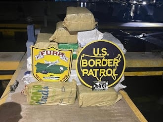 Simultáneamente, la embarcación ocupada fue remolcada hasta el mismo lugar. En las instalaciones de la Unidad se encontraba personal de la agencia federal Border Patrol junto a la Unidad Canina (K-9). Durante una inspección exterior, el can realizó un marcaje positivo a la presencia de sustancias controladas. Como resultado de la intervención, se ocuparon aproximadamente 24 fardos de cocaína, con un peso total estimado de 823 kilogramos.