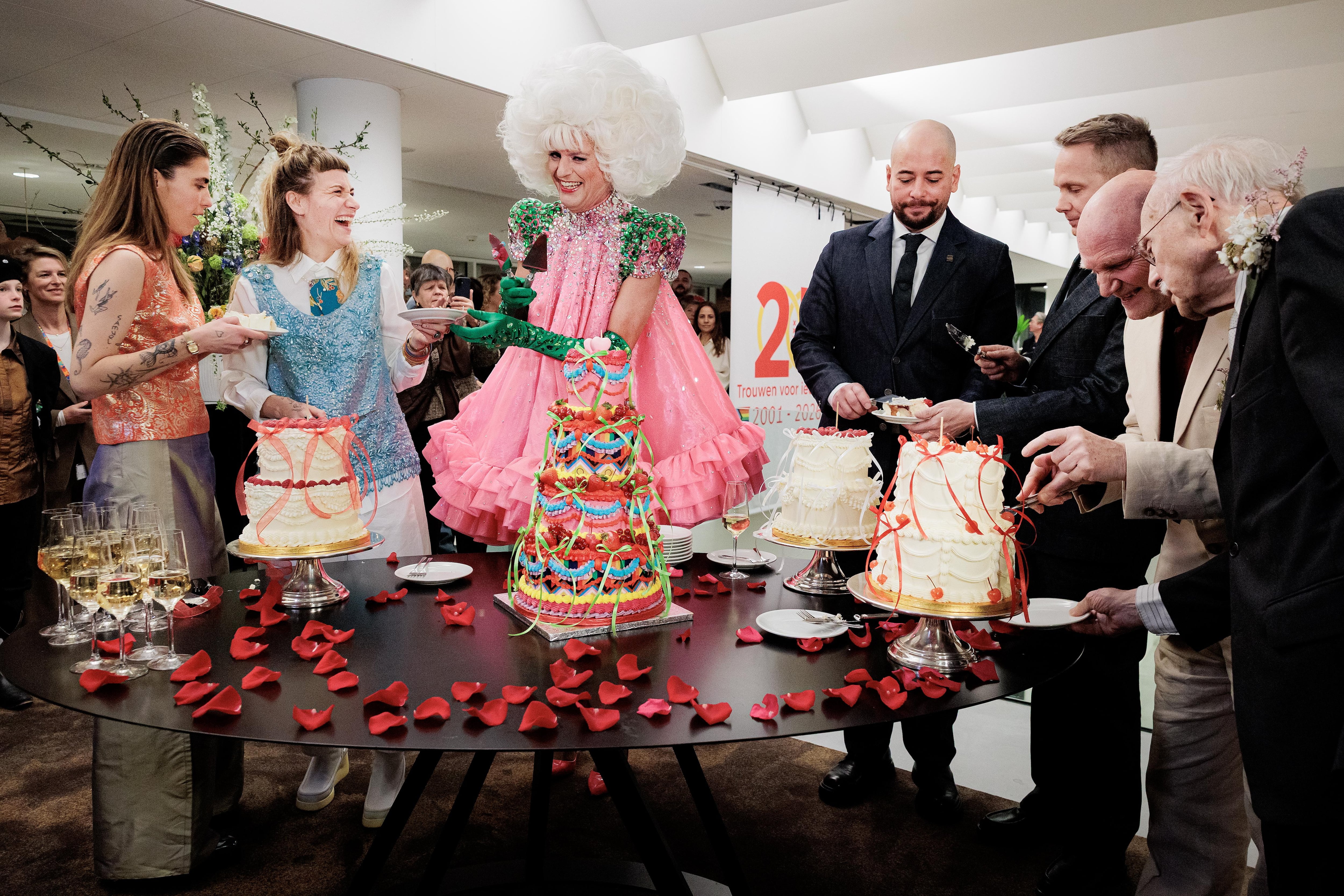 Con motivo del aniversario, Ámsterdam celebró esta madrugada una ceremonia en el ayuntamiento en la que tres parejas homosexuales contrajeron matrimonio ante la alcaldesa, Femke Halsema, y el primer ministro, Rob Jetten, el primer jefe de Gobierno en Países Bajos abiertamente homosexual.