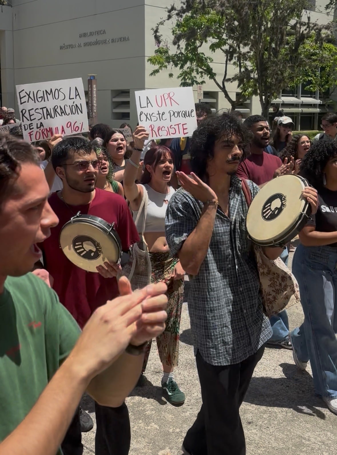 Entre las consignas, se escuchaba un eco de luchas. “¡Esta lucha sigue, cueste lo que cueste!“. ”¡Nos cierran, nos cierran los recintos; la Junta y el imperio quieren nuestro pueblo extinto!“; y ¡No me llames IUPI, llámame candela!