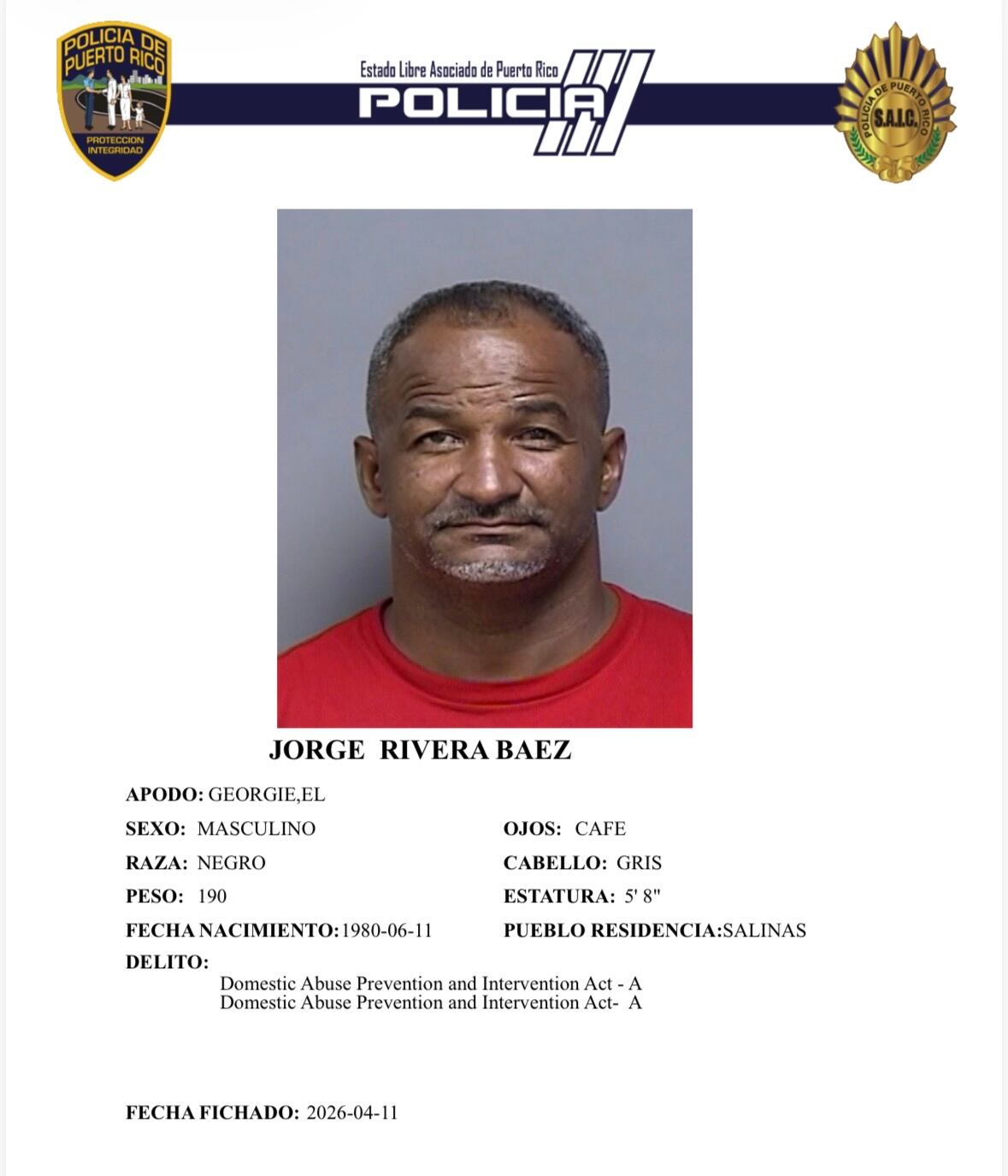 Agentes de la Policía de Puerto Rico, adscritos a la División de Violencia de Género y Asuntos Juveniles, realizaron una investigación que culminó con la radicación de cargos, por parte de la Fiscalía, por el artículo 3.1 (Maltrato) y por el artículo 3.3 (Maltrato Mediante Amenazas) de la Ley 54 de Violencia Doméstica, contra Jorge Luis Rivera Báez de 46 años, residente en Salinas.