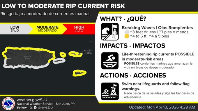 La vigilancia de inundaciones continúa en efecto desde las 10:00 de la mañana del lunes hasta las 8:00 de la mañana del miércoles para todo Puerto Rico.