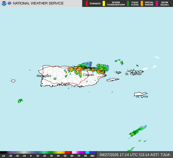 Según el SNM, el radar Doppler detectó lluvias fuertes asociadas a tormentas eléctricas, con acumulaciones entre 1 y 2 pulgadas en los municipios bajo advertencia.