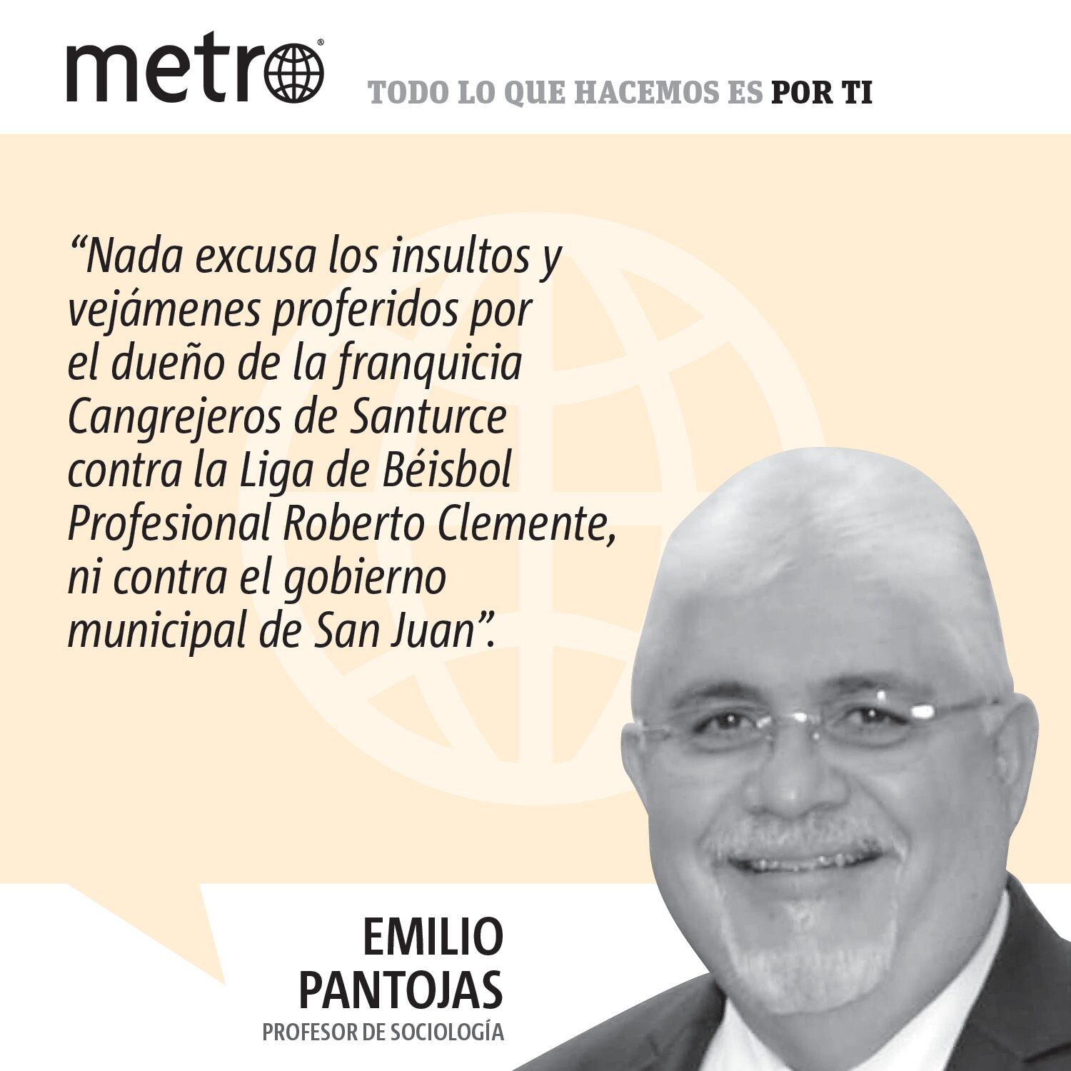 El béisbol de invierno en Puerto Rico ha venido a menos. Hay poco público, pocos auspiciadores y su rentabilidad es nula. Los municipios, ex peloteros y hasta los artistas puertorriqueños han salido al rescate con pobres resultados. Entiendo las razones de los reclamos de los dueños y ejecutivos de equipos sobre la necesidad de subsidios y apoyo municipal y estatal con las facilidades y fuentes de patrocinio. Pero nada excusa los insultos y vejámenes proferidos por el dueño de la franquicia Cangrejeros de Santurce contra la Liga de Béisbol Profesional Roberto Clemente, ni contra el gobierno municipal de San Juan.