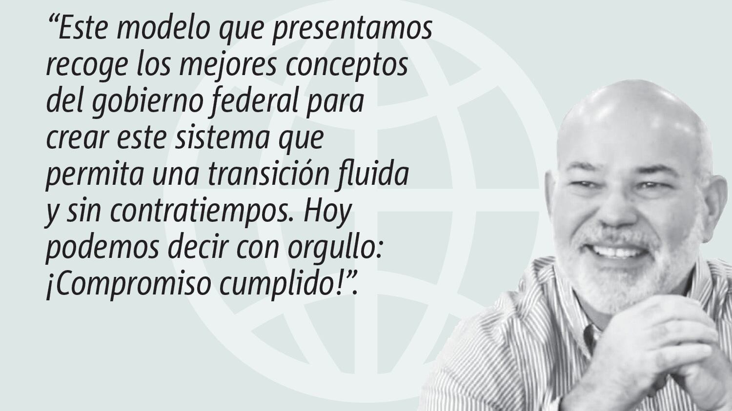 Este modelo que presentamos recoge los mejores conceptos del gobierno federal para crear este sistema que permita una transición fluida y sin contratiempos. Hoy podemos decir con orgullo: ¡Compromiso cumplido!