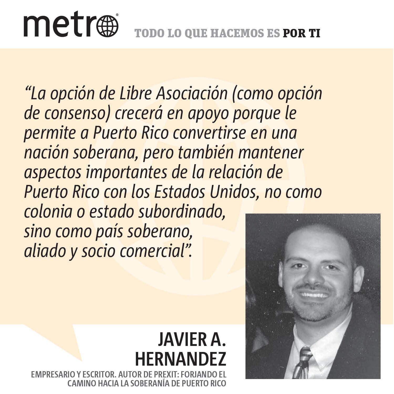 Javier A. Hernandez es un empresario, escritor, autor, asesor y defensor de la soberanía nacional y la descolonización puertorriqueña con sede en Nueva Jersey y Puerto Rico. Es portavoz en la diáspora del Movimiento Acción Puertorriqueña y autor de PREXIT: forjando el camino hacia la soberanía de Puerto Rico, Puerto Rico para los puertorriqueños y Puerto Rico: Hacia una economía nacional soberana. Se le puede contactar aquí y Twitter @PRexitBook