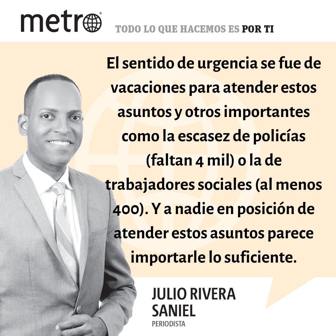 El sentido de urgencia se fue de vacaciones para atender estos asuntos y otros importantes como la escasez de policías (faltan 4 mil) o la de trabajadores sociales (al menos 400). Y a nadie en posición de atender estos asuntos parece importarle lo suficiente.