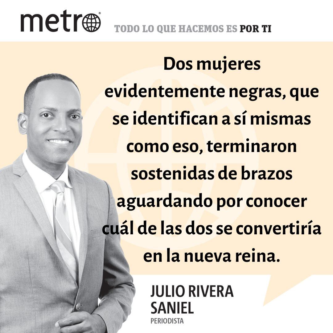 Por mucho tiempo esa definición ha estado limitada en la práctica a mujeres de piel blanca. Con contadas excepciones como Wilnelia Merced en el caso del Miss Mundo, Alba Reyes, Roselyn Sánchez, Joyce Giraud o Alba Reyes, nuestras representantes de la belleza nacional han tenido un evidente déficit de melanina. Y ni hablar de que son contadas las candidatas que han portado la corona y que se han definido a sí mismas como negras o afrodecendientes. Por ello, el cuadro final de la edición de este año ha sido histórico. Dos mujeres evidentemente negras, que se identifican a sí mismas como eso, terminaron sostenidas de brazos aguardando por conocer cuál de las dos se convertiría en la nueva reina. Con todo lo que ello implica. Ante una audiencia millonaria en Puerto Rico y Estados Unidos, se veía a Leonela González de Jesús y Ashley Ann Cariño Barreto comentar en una conversación inaudible para el público. Luego se supo que comentaban justo eso: por primera vez en la historia sería inevitable que una mujer negra se convertiría en la representante de nuestra belleza ante el mundo. Hasta entonces y salvo los casos de Alba o Michelle Marie, la estampa de las dos mujeres podría incluir una mujer negra pero esta siempre terminaba como primera finalista. Esta noche sería diferente. Otra mujer afrodecendiente, Michelle Marie Colon, le coronaría como resultado de una ceremonia antecedida por un discurso oficial de búsqueda de diversidad.