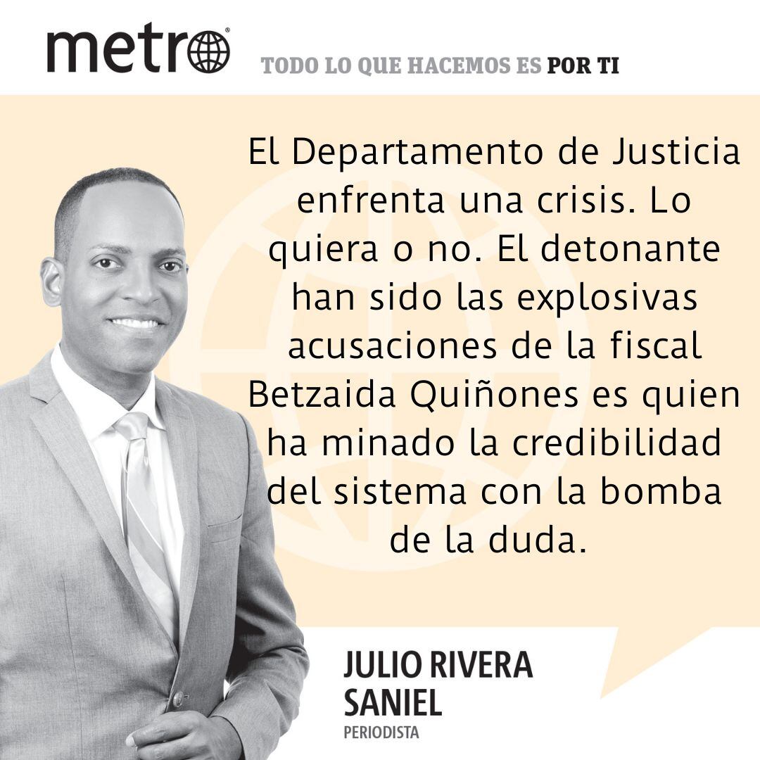 El Departamento de Justicia enfrenta una crisis. Lo quiera o no. El detonante han sido las explosivas acusaciones de la fiscal Betzaida Quiñones es quien ha minado la credibilidad del sistema con la bomba de la duda.