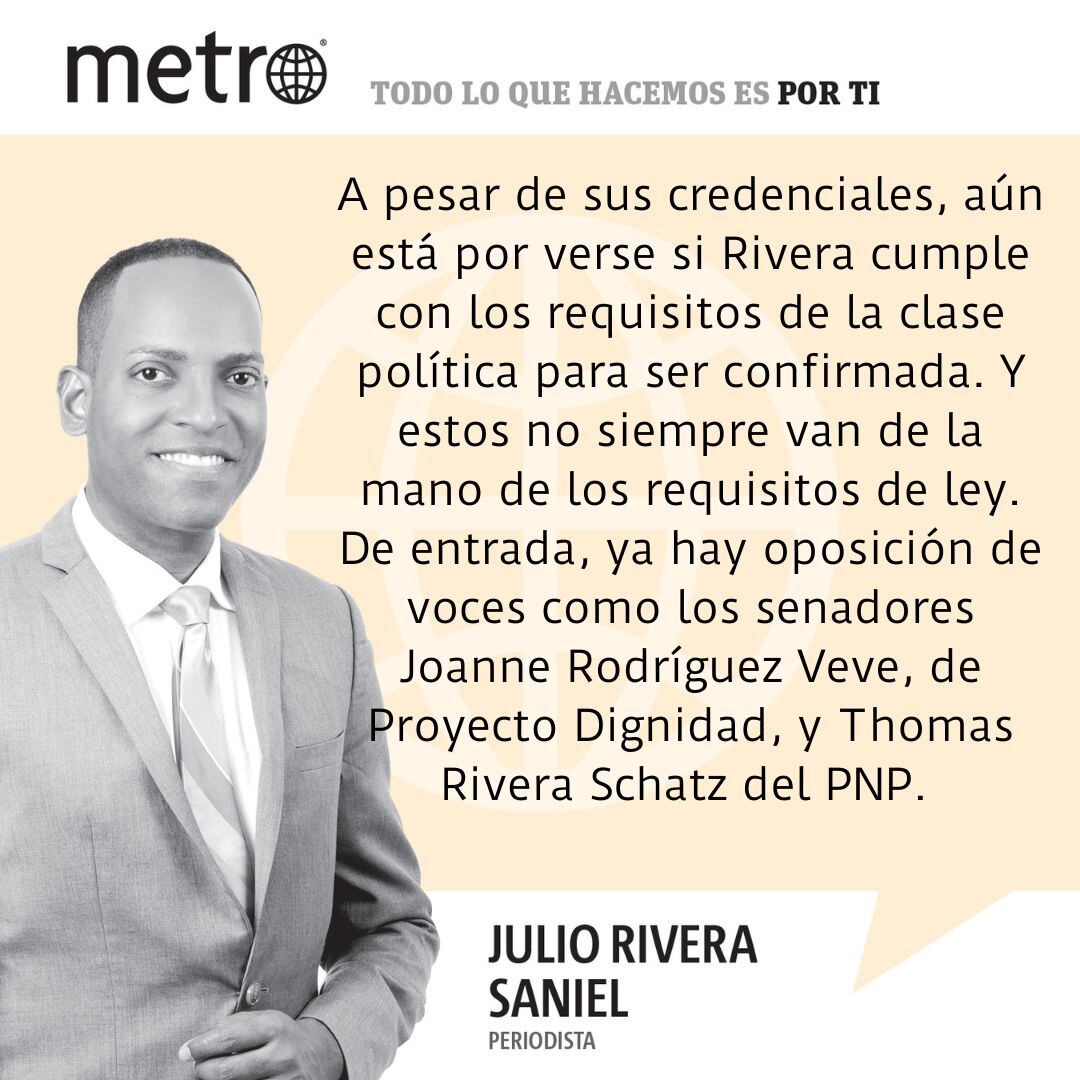 A pesar de sus credenciales, aún está por verse si Rivera cumple con los requisitos de la clase política para ser confirmada. Y estos no siempre van de la mano de los requisitos de ley. De entrada, ya hay oposición de voces como los senadores Joanne Rodríguez Veve, de Proyecto Dignidad, y Thomas Rivera Schatz del PNP. En ambos casos, las razones expresadas públicamente como motivo de los reparos para su confirmación apuntan al historial de Rivera y su defensa en de asuntos como la perspectiva de género. Y ello no deja de ser cuando menos interesante a la luz de la ley orgánica que crea la Oficina de la Procuradora y la procuraduría. En el artículo 4 (Creación) la Ley deja claro que la persona que ocupe el puesto de procuradora de la mujer debe tener un compromiso con el tema de la equidad y la perspectiva de género. “La designada a este cargo deberá ser una mujer de reconocida capacidad profesional e independencia de criterio, que se haya distinguido por su compromiso en la defensa de los derechos de las mujeres, en la lucha por la eliminación de todas las manifestaciones de opresión, marginación y discrimen, por su respeto a las diferencias y que esté dispuesta a hacer un análisis continuo de la situación de las mujeres desde una perspectiva de género”, reza la Ley. ¿Puede el cumplimiento con un requisito de Ley para el puesto ser usado en contra de su confirmación? Parecería que si. Aunque suponga un contrasentido.