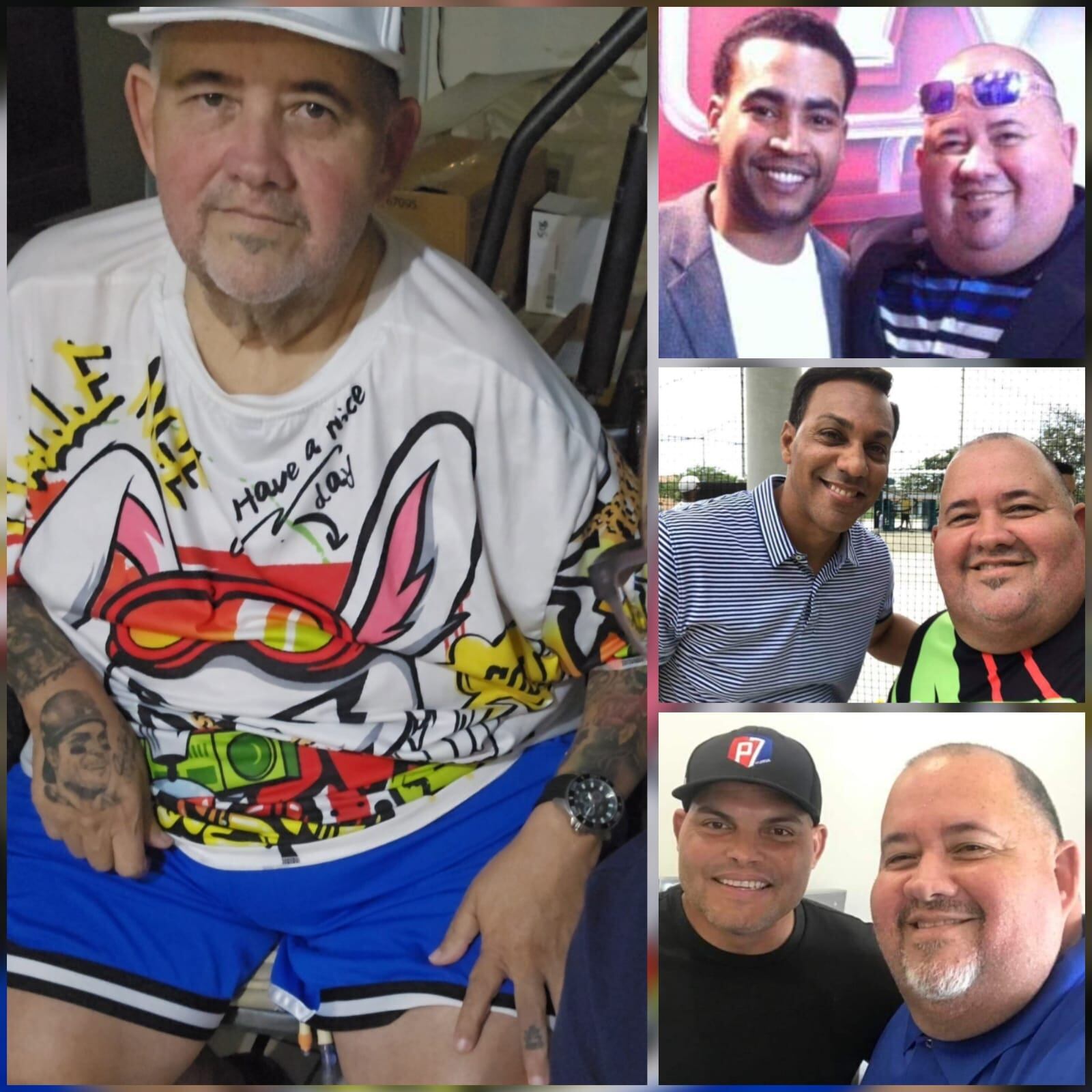 De momento, el 15 de junio pasado, pa variar por ese mismo app de la perdición, me anuncia, de sopetón (pensé que me había enviado otra foto del Onlyfans de Noris Joffre), que tiene cáncer de próstata hacía tan solo un mes y me pidió que orara por él. Lo noté asustao y no es para menos. Me frikié y rápido lo llamé. Hablamos. Constantemente le escribo preguntándole cómo sigue hasta que un día le dije que lo iba a visitar y entrevistar pa esta columna. Me tiré pa su casa en Vega Baja y tan pronto lo vi (lo acompañaba la muchacha, muy simpática, que le ayuda en la casa y a él), me asombró al verlo perder muchísimo peso. Ha perdido 200 libras debido al cáncer. De 427 libras, era 64 de pantalón, ahora está en 240 libras. Allí mismo en la sala de su casa, rodeado de sus miles de carritos Hot Wheels, trofeos, fotos con diferentes deportistas, en pistas de carros, le hice esta entrevista. Antes de empezar, Tato ordenó una pizza por teléfono. Ya picaba el hambre, eran como las 6 de la tarde.