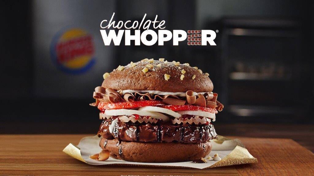 Burger King anunció hoy el lanzamiento de un Wopper de chocolate, en una edición limitada.