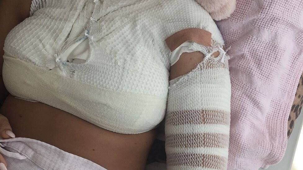 Todo mi verano estuvo lleno de viajes al hospital y citas con mis terapeutas. Tenía que masajear mi piel marcada con una crema medicinal tres veces al día y a diario usar una prenda de presión en mi brazo izquierdo para tratar de aplastar las cicatrices.