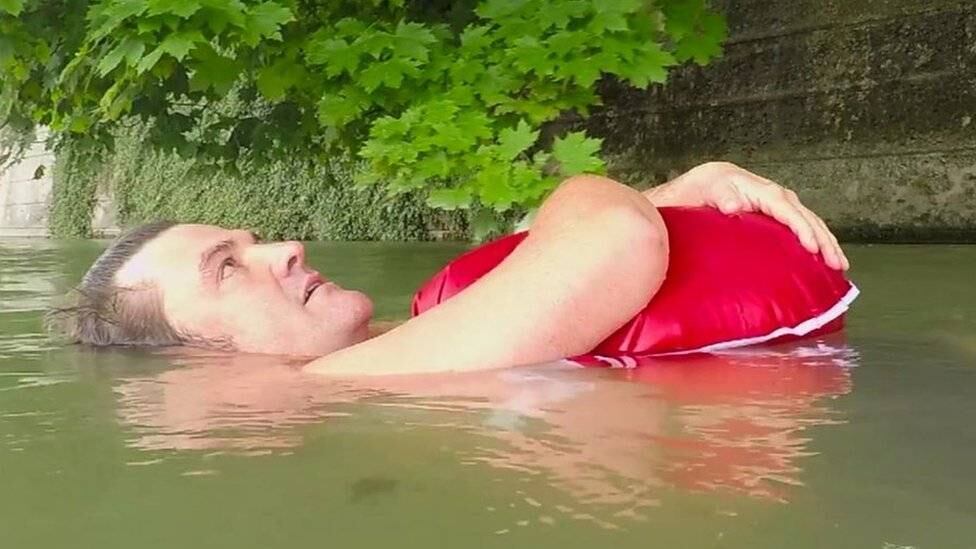 2. El hombre que nada 2 kilómetros diarios por un río para llegar a su trabajo