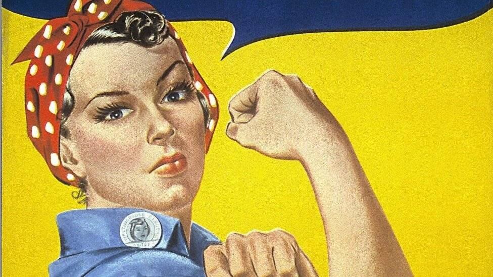 El cartel, del artista de Pittsburgh J. Howard Miller, representa a una trabajadora vestida con una camisa azul y un pañuelo de lunares rojos, flexionando su bíceps, con la leyenda "¡Podemos hacerlo!".