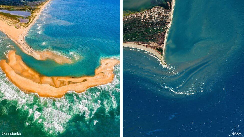 Esa zona de la costa de Carolina del Norte está constantemente en movimiento y tanto las olas y las corrientes redistribuyen los materiales en la formación de islas, añade la NASA.