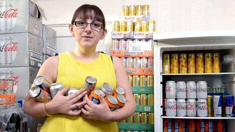 Cada lata de estos productos contiene el equivalente a unas 12 cucharadas de azúcar y 3 tazas de café, toda una "bomba" para la salud, según los especialistas, aunque Emma por ahora no ha notado problemas con sus dientes ni sobrepeso, en parte porque casi no ingiere alimentos.