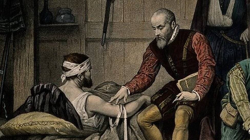 El tratamiento que se les aplicaba hasta entonces era cauterizar las lesiones con aceite hirviendo, lo que en muchas ocasiones provocaba la muerte del malherido y los que sobrevivían solían agonizar por las heridas inflamadas.