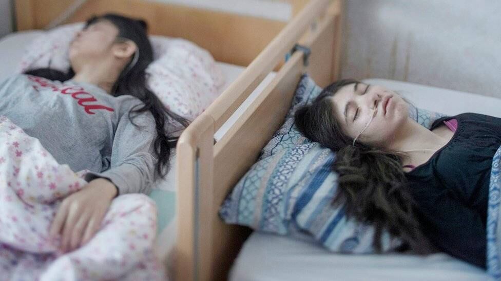 Cuando su padre la carga de su silla de ruedas, Sophie**, de 9 años, se muestra totalmente inerte. Su cabello, sin embargo, es grueso y brillante, como el de una niña sana.