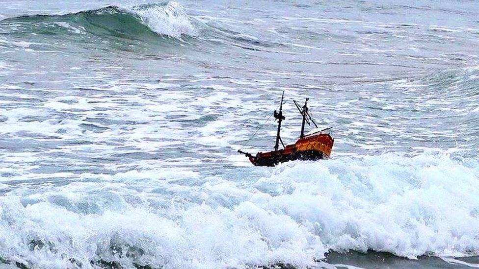 La situación podría ser dramática, si no fuera porque se trata de un barco pirata de juguete que lleva casi un año en altamar.