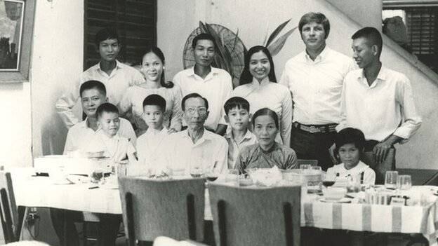 Se reunió con los 12 miembros de la familia de su mujer en la casa que su suegra tenía en la ciudad, mientras se escuchaba el fuego de mortero norvietnamita a la distancia.