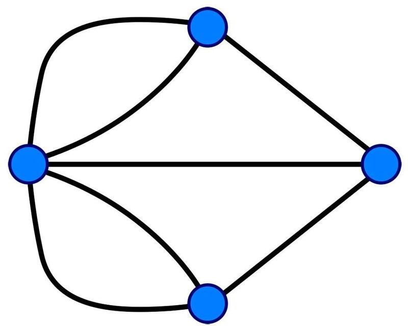 Lo que descubrió es esto: para que un viaje de ida y vuelta (sin volver sobre tus pasos) sea posible, cada punto —excepto los puntos de inicio y final— debe tener un número par de líneas entrando y saliendo.