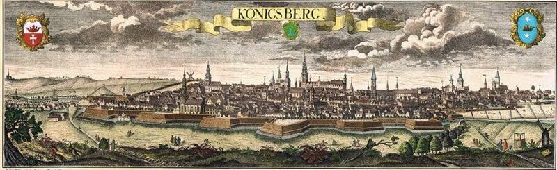La ciudad prusiana de Königsberg estaba dividida en cuatro regiones distintas por las diversas ramas del río Pregel.