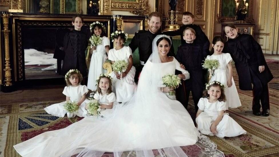Las imágenes, tomadas por Alexi Lubomirski, incluyen una foto de grupo en la que aparecen la reina Isabel II y otros familiares cercanos del novio.
