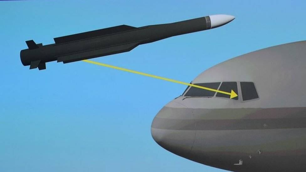 Los expertos simularon entonces varias trayectorias de la ojiva e indicaron que, en su criterio, había explotado metros por encima de la nariz del avión.