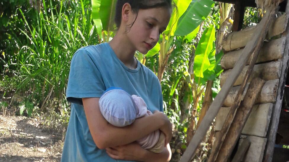 Desnutrida, sola en medio de la selva central de Perú, con un bebé de menos de dos mes (sin vacunar y repleto de picaduras de insectos) entre sus flaquísimos brazos.
