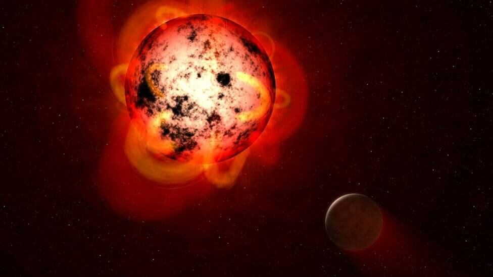 Pero muchas enanas rojas son muy activas. Proxima Centauri, por ejemplo, otra enana roja que tiene en su órbita un exoplaneta rocoso, es tan activa que sus fulguraciones solares o liberaciones intensas de radiación electromagnética hacen poco probable que pueda haber vida en los planetas a su alrededor.