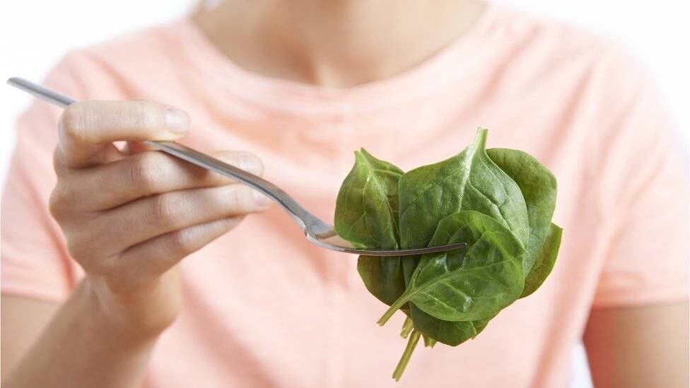 "La espinaca tiene compuestos, llamados oxalatos, que esencialmente atrapan el hierro", explica Sharp.
