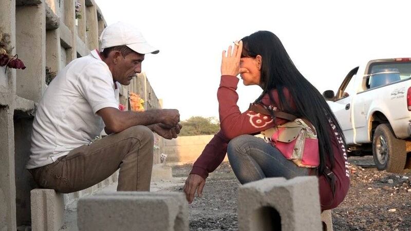 Bajo el sol ardiente de la costa norte de Colombia, una familia venezolana se despide de su padre entre sollozos y música romántica que suena desde un celular.