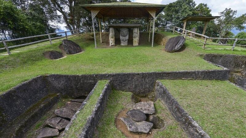 Son las 162 tumbas subterráneas de Tierradentro excavadas en roca volcánica, y las más de 500 estatuas y monolitos funerarios que rodean el cercano pueblo de San Agustín.