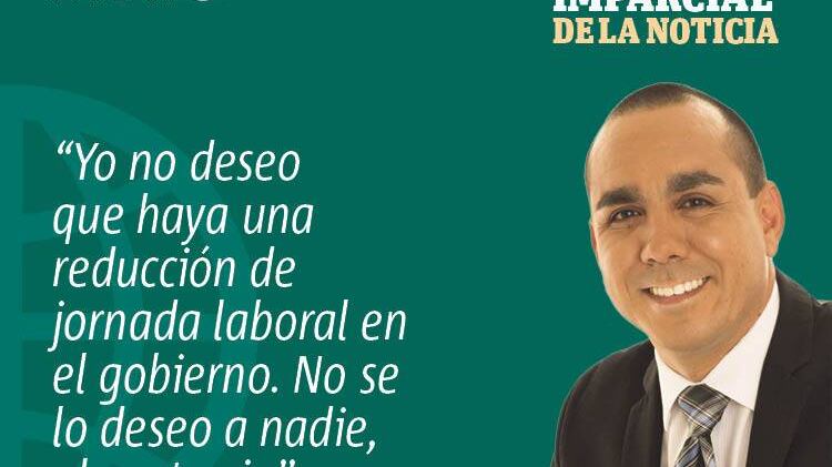 Yo no deseo que haya una reducción de jornada laboral en el gobierno. No se lo deseo a nadie, al contrario. Ahora bien, lo único que pido al empleado público es que, cuando piense en esta situación, solo recuerde y reconozca que acá, en el sector privado, muchos han pagado con su jornada y sus empleos para salvar al gobierno, salvar la nómina gubernamental y que, si a ellos les recortan la jornada en 10 %, piensen que acá se ha recortado también, que hay personas a las que les han tenido bajar sus salarios manteniendo las mismas horas de trabajo, y, en el peor de los casos, han perdido sus trabajos para que el dinero de ese empleado vaya al gobierno, a su nómina. Solo recuerden eso y no crean que son los únicos afectados en esta crisis. No pido nada más.