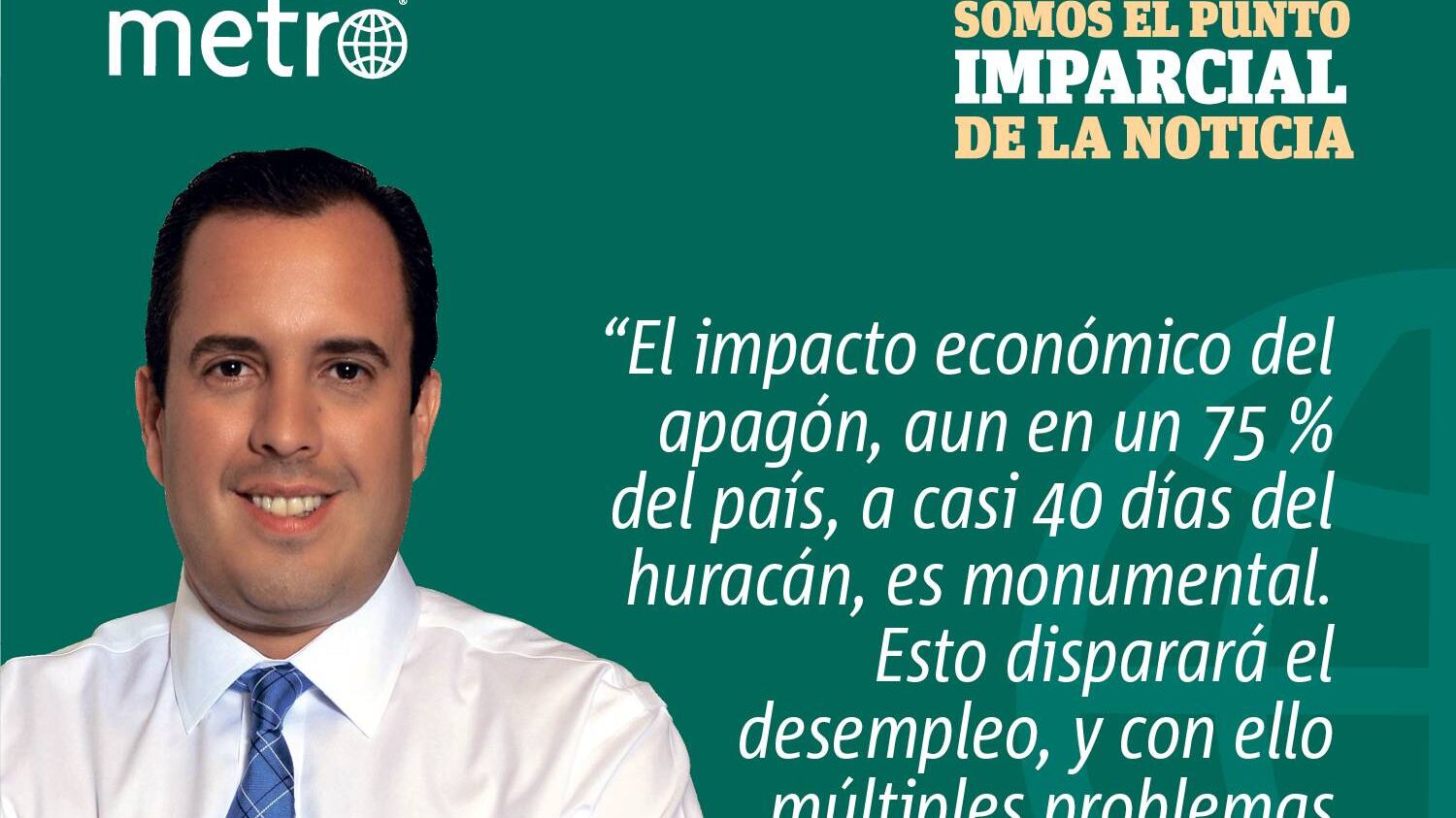 Las prioridades en el proceso de recuperación de Puerto Rico tienen que ser atender las necesidades de los damnificados y al mismo tiempo levantar el sistema eléctrico, aun con las limitaciones que existen y los retos que ello representa. Sin embargo, es urgente que se agilice al máximo ese proceso porque cada día que pasa sin que se prenda un hogar o una empresa, nuestra economía retrocede años luz. El impacto económico del apagón, aun en un 75% del país a casi 40 días del huracán, es monumental. Esto disparará el desempleo y con ello múltiples problemas socioeconómicos nos vendrán encima.
