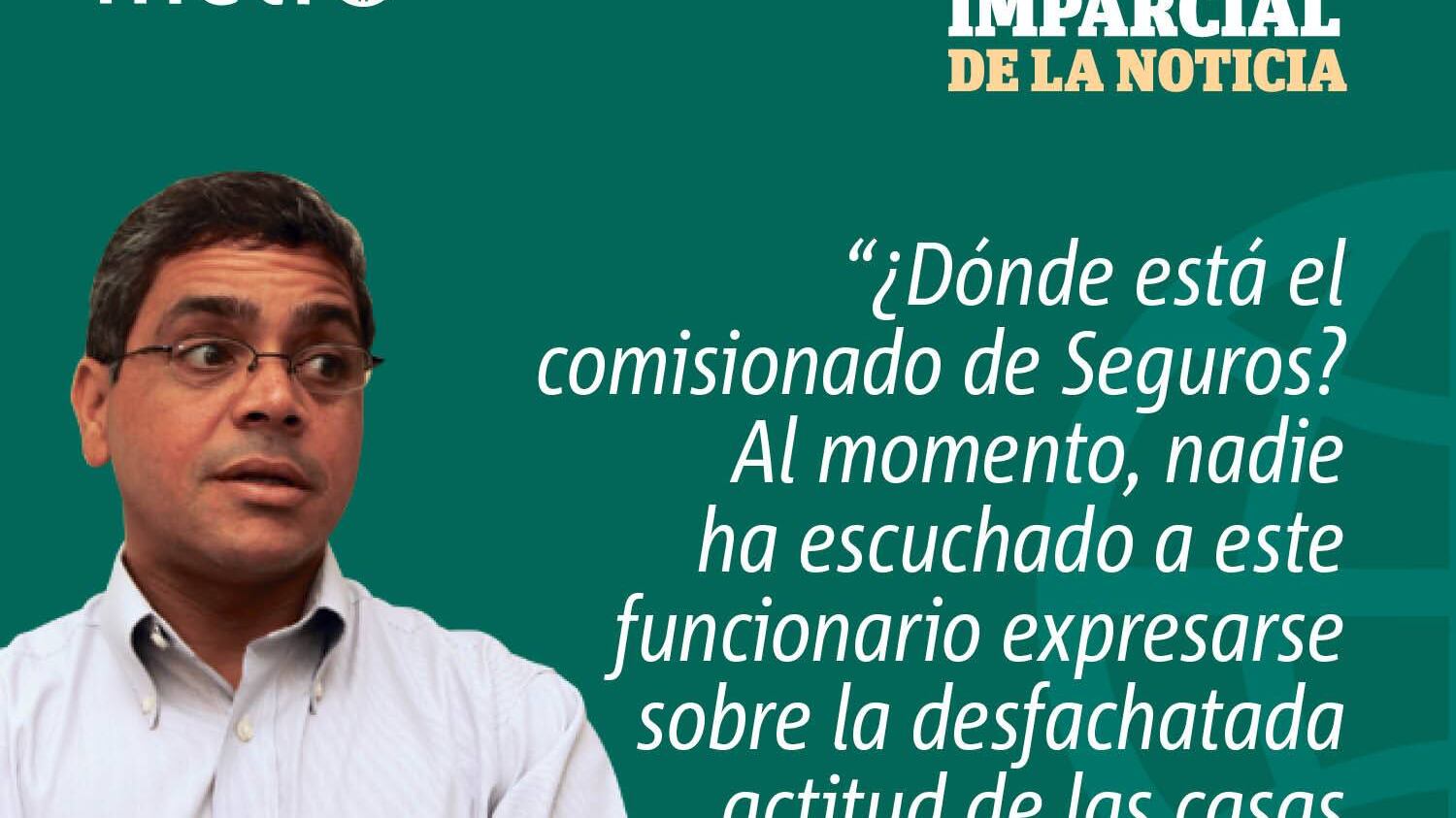 Esta iniciativa es más que necesaria, pertinente y urgente. Todo apunta a que los seguros no quieren pagar y nadie los está fiscalizando. Entonces, ¿dónde está Javier Rivera Ríos, el Comisionado de Seguros? Al momento, nadie ha escuchado a este funcionario expresarse sobre la desfachatada actitud de las casas aseguradoras.