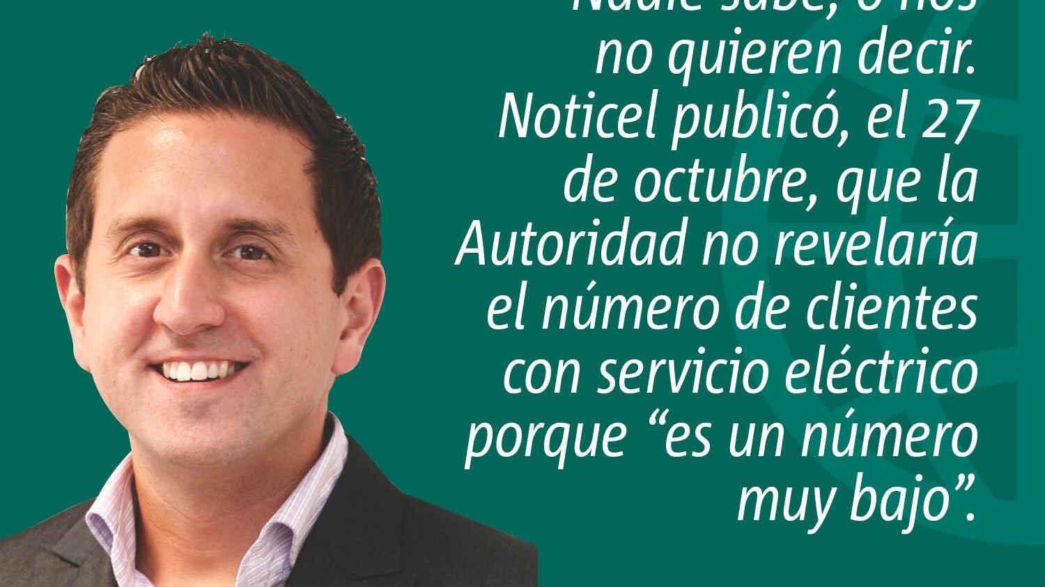 Nadie sabe, o nos no quieren decir. Noticel publicó, el 27 de octubre, que la Autoridad no revelaría el número de clientes con servicio eléctrico porque “es un número muy bajo”. El 29 de noviembre, Rubén Sánchez en WKAQ logró que el director de servicio al cliente de la Autoridad revelara que solo 109,000 contadores estaban registrando el consumo eléctrico en el país, apenas un 7.5 % del millón y medio de clientes. Y esta semana, Metro reportó que un censo realizado por la alcaldía en Bayamón apuntaba a que solo 24,006 clientes residenciales, un 30 % de 81,225 hogares, tenían luz en dicho municipio. Este número, preocupante para los bayamonenses, levanta aún más temor sobre la situación en los municipios de la montaña.