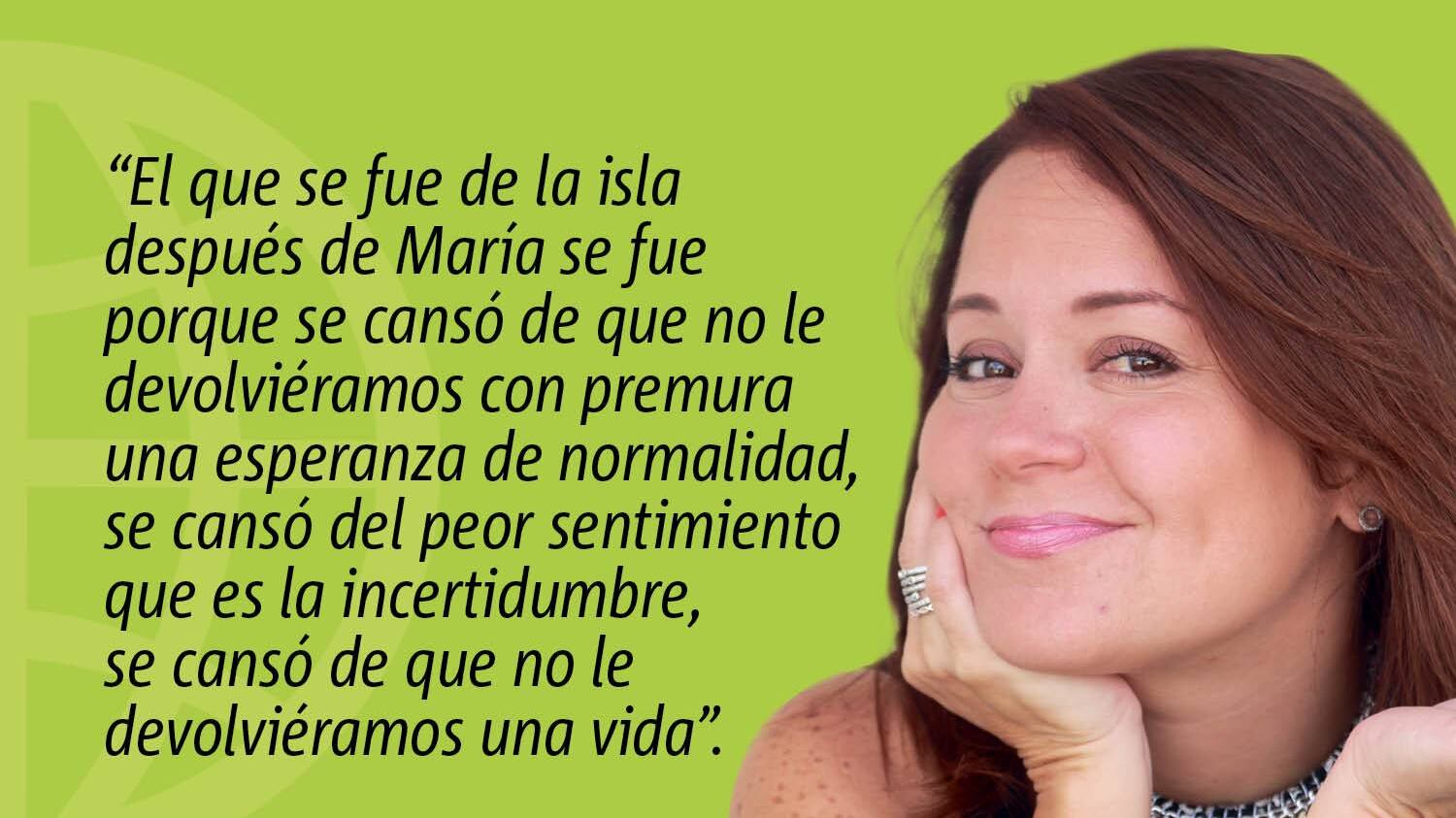 Es doloroso de alguna manera, pero hay un propósito noble en esa mudanza. ¿Quién puede juzgar esa intención? ¡Nadie! Hasta que llegó María, yo escuchaba: “Me mudo a Estados Unidos”, y suspiraba con tristeza, lamentaba que se nos fuera otro ser valioso más y me preguntaba internamente si sería para siempre, si recuperaríamos ese recurso para Puerto Rico, si volveríamos a ser suficientemente atractivos para esa persona, compitiendo con nuevas raíces que echaría en otro lugar. Siempre me iba en esa nube. No es fácil ser yo. Me voy a la cama con esos pensamientos que son como las letritas de CNN: no paran.