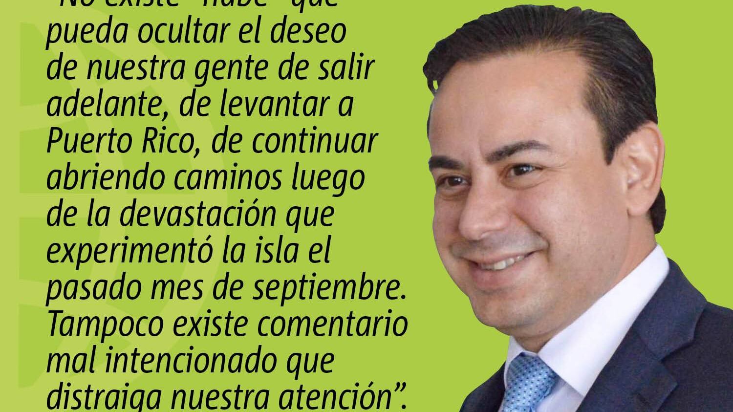 No existe “nube” que pueda ocultar el deseo de nuestra gente de salir adelante, de levantar a Puerto Rico, de continuar abriendo caminos luego de la devastación que experimentó la isla el pasado mes de septiembre. Tampoco existe comentario mal intencionado que distraiga nuestra atención. La recuperación de Puerto Rico está encaminada y seguimos trabajando en nuestra agenda de futuro, no como si no hubiéramos sufrido el embate de Irma y María, sino a pesar de ello.