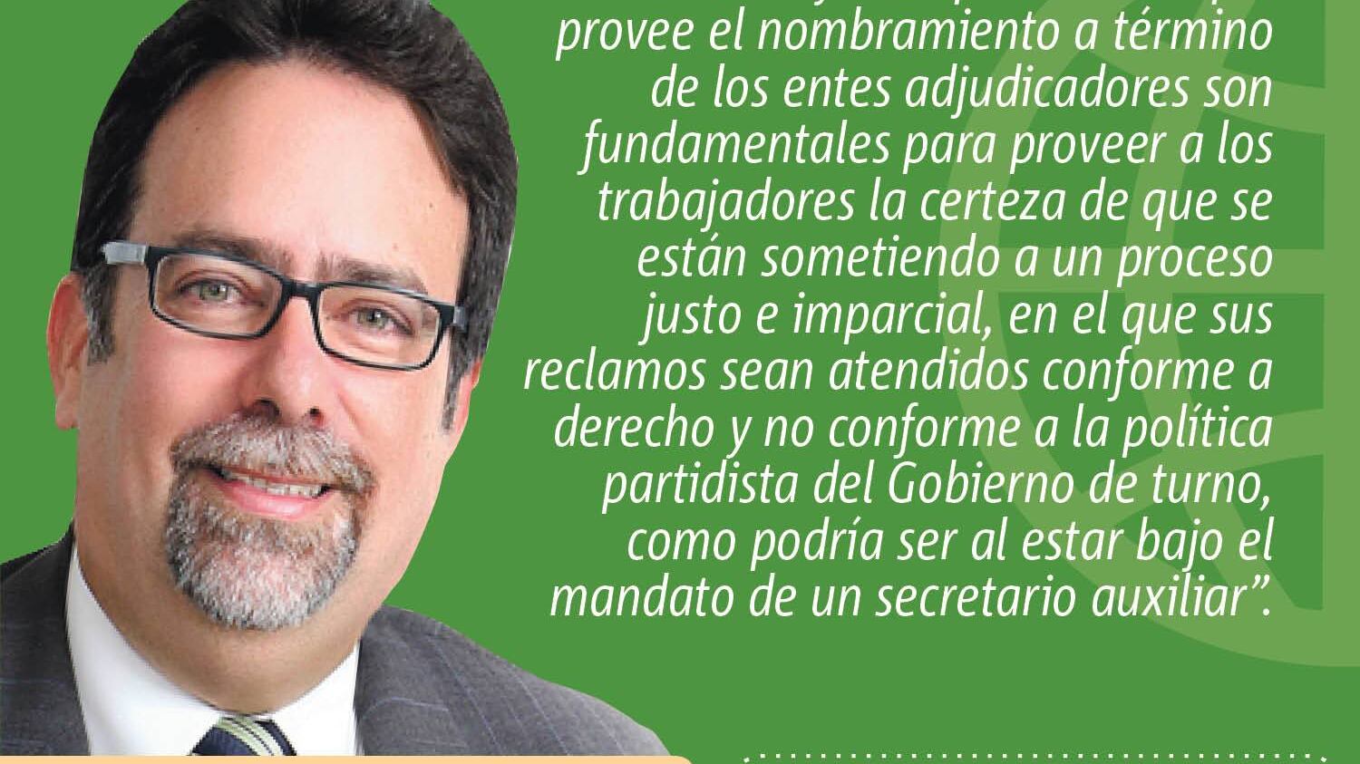 En el caso del plan de reorganización del Departamento del Trabajo y Recursos Humanos, advierto que, si se aprobara este plan, agencias que adjudican controversias obrero patronales serán fusionadas bajo la autoridad de un secretario auxiliar nombrado por el Departamento del Trabajo. Ciertamente, la autonomía decisoria y la imparcialidad que provee el nombramiento a término de los entes adjudicadores son fundamentales para proveer a los trabajadores la certeza de que se están sometiendo a un proceso justo e imparcial, en el que sus reclamos sean atendidos conforme a derecho y no conforme a la política partidista del Gobierno de turno, como podría ser al estar bajo el mandato de un secretario auxiliar.