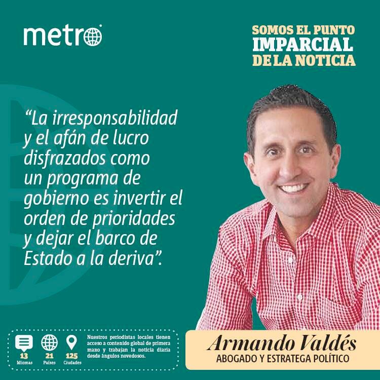 La irresponsabilidad y el afán de lucro disfrazados como un programa de gobierno es invertir el orden de prioridades y dejar el barco de Estado a la deriva.