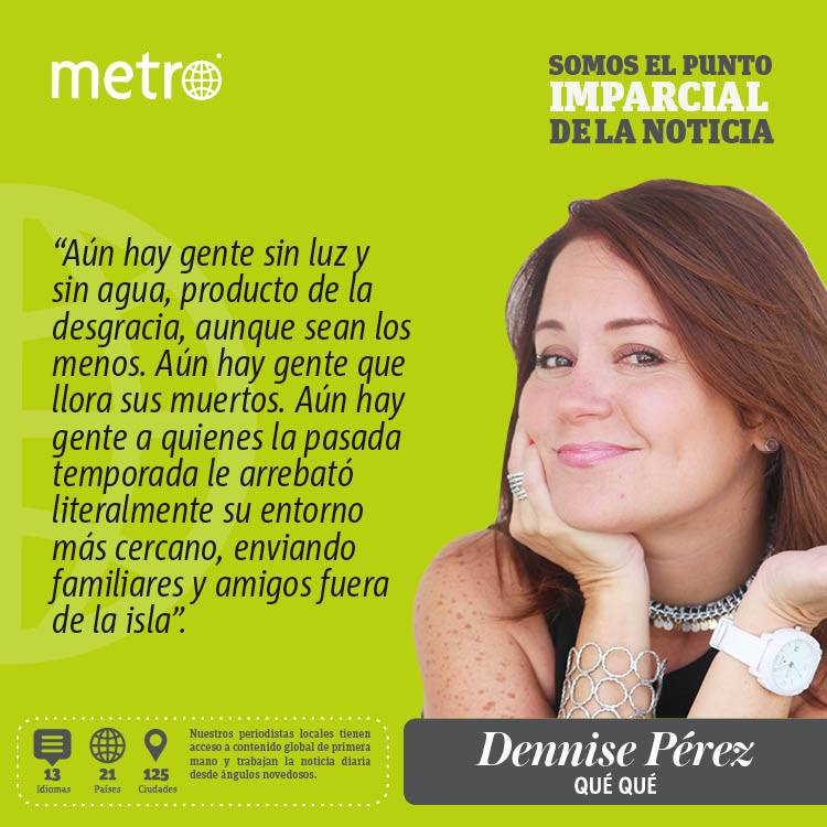 Este es un llamado a la sensatez colectiva y a que todos ejerzamos nuestro rol de una manera correcta, sensible, en esta temporada, que se anticipa activa. Aún hay gente sin luz y sin agua, producto de la desgracia, aunque sean los menos. Aún hay gente que llora sus muertos. Aún hay gente a quienes la pasada temporada le arrebató literalmente su entorno más cercano, enviando familiares y amigos fuera de la isla.