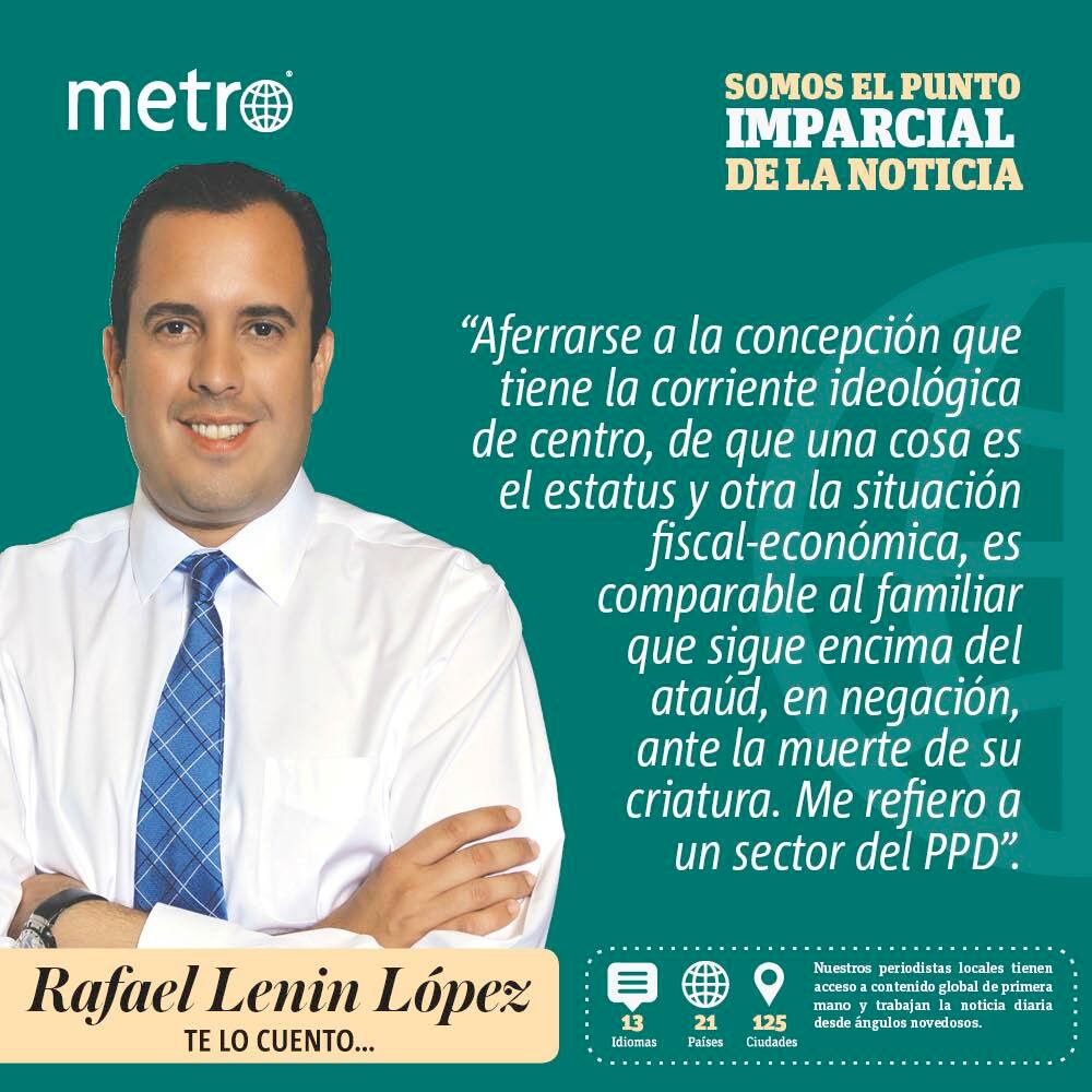 Finalmente, anda en una carretera paralela el tema de la subordinación política del país. A la metrópoli no le interesa resolverlo, evidentemente. Le corresponde a la sociedad puertorriqueña hacerlo de cara al futuro, entendiendo que el estatus o, correctamente planteado, la relación que tengamos con Estados Unidos y el resto del mundo SÍ incide sobre nuestro desarrollo socioeconómico. Aferrarse a la concepción que tiene la corriente ideológica de centro, de que una cosa es el estatus y otra la situación fiscal-económica, es comparable al familiar que sigue encima del ataúd, en negación, ante la muerte de su criatura. Me refiero a un sector del PPD.