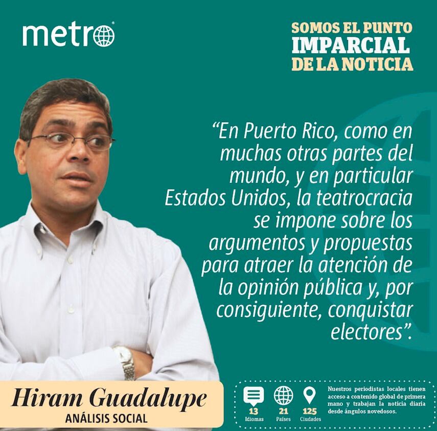 En Puerto Rico, como en muchas otras partes del mundo, y en particular Estados Unidos, la teatrocracia se impone sobre los argumentos y propuestas para atraer la atención de la opinión pública y, por consiguiente, conquistar electores. Podríamos decir que Donald Trump es el ejemplo más elocuente.