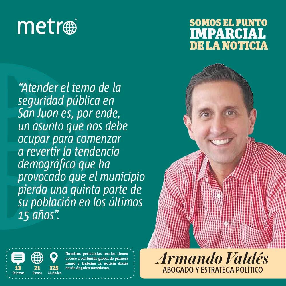 Atender el tema de la seguridad pública en San Juan es, por ende, un asunto que nos debe ocupar para comenzar a revertir la tendencia demográfica que ha provocado que el municipio pierda una quinta parte de su población en los últimos 15 años. Por supuesto, la seguridad pública no está exclusivamente en manos de la ciudad; tenemos que reconocer los roles diversos de las autoridades del Gobierno central, del federal y del municipal. Aún así, es mucho lo que se puede hacer desde el ayuntamiento. Por ello, propongo los siguientes puntos como parte de un plan de trabajo para mejorar la seguridad pública en nuestra capital.