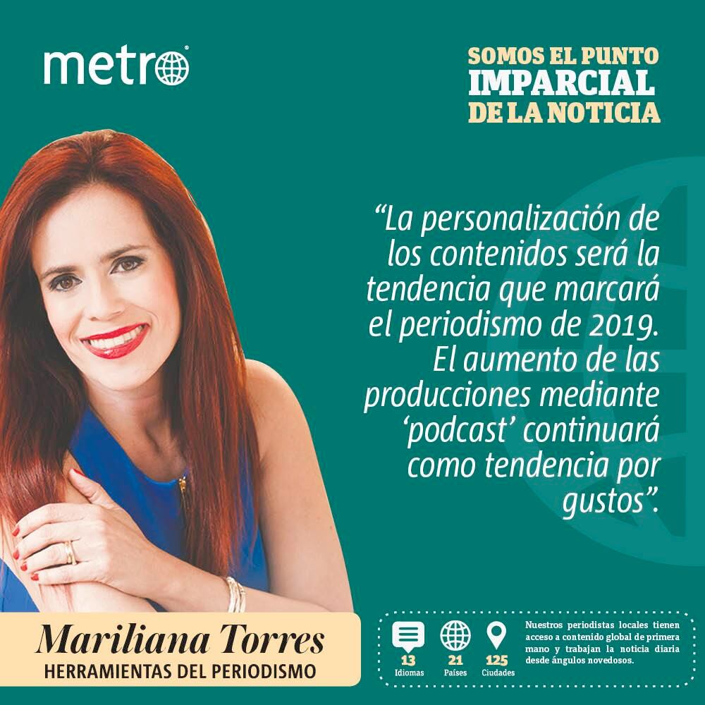 En esa carrera desenfrenada de la inmediatez, los medios de comunicación también tendrán que hacer la transición a las nuevas plataformas de audio y video para llegar a las nuevas generaciones. El periodismo de marca también ofrecerá opciones reales a los periodistas que trabajan por su cuenta. Ese nuevo periodismo ofrecerá contenido de acuerdo con los gustos de la audiencia que, previamente, han sido medidos. Si el medio conoce mejor a su audiencia, puede segmentar la publicidad y trabajar el periodismo de marca con todo el profesionalismo que requiere. Por lo tanto, la personalización de los contenidos será la tendencia que marcará el periodismo de 2019. El aumento de las producciones mediante podcast continuará como tendencia por los gustos y las nuevas formas de llegar a los consumidores.