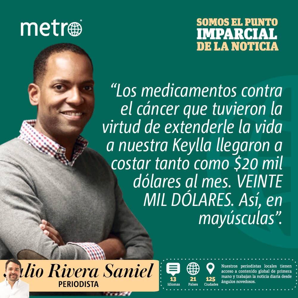 Pero la batalla pública de Keylla contra el cáncer nos dejó con una tarea de justicia para los miles de personas que, como ella, batallan contra el cáncer. Es una agenda complicada que, en gran medida, depende de factores que no controlamos a nivel local. Pero el primer paso es discutirla y unirnos a reclamos que ya ocupan a otros miles en Estados Unidos. Me refiero a los altos costos de los tratamientos médicos. El amigo y colega Normando Valentín revelaba la pasada semana datos que han escandalizado a muchos. Los medicamentos contra el cáncer que tuvieron la virtud de extenderle la vida a nuestra Keylla llegaron a costar tanto como $20 mil dólares al mes. VEINTE MIL DÓLARES. Así, en mayúsculas. Esa cantidad es el equivalente al ingreso anual de un gran numero de familias puertorriqueñas. Piénselo detenidamente. Según datos del Departamento de Educación, el salario promedio anual para un maestro en la isla es de $27 mil. En el caso de Keylla, según datos del Gobienro federal, el ingreso promedio de los hogares estadounidenses ronda los $52 mil anuales. Haga sus números.